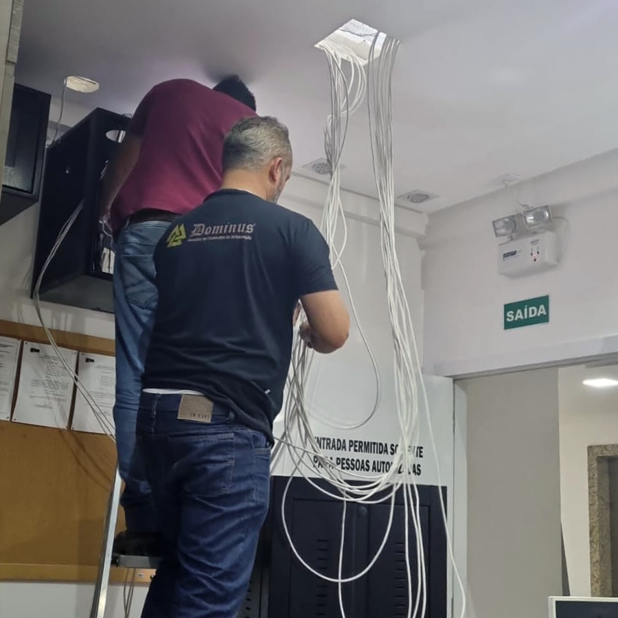 Lançamento de Cabos: Instalação de cabos de par trançado (como CAT6) ou fibra óptica em eletrocalhas, canaletas e tubulações.